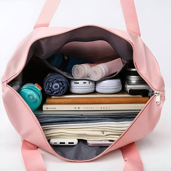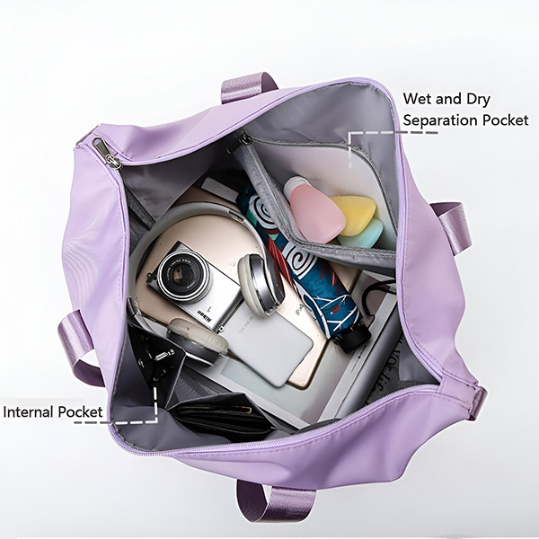 Questa borsa è dotata di un divisore bagnato e asciutto per riporre comodamente vestiti e asciugamani sporchi o bagnati.