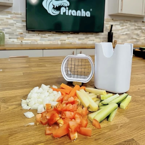 Lo strumento da cucina CHOPZY non serve solo per le patatine fritte; è un tritatutto versatile che lavora con diversi ingredienti come carote, cetrioli e cipolle, rendendo la preparazione dei pasti più semplice.