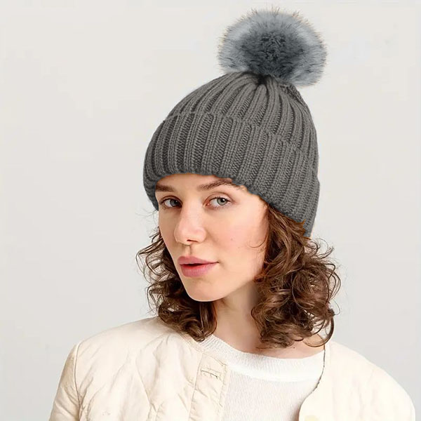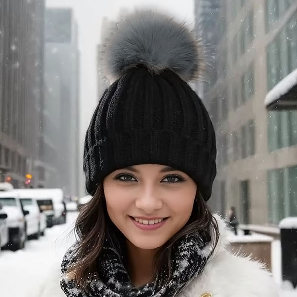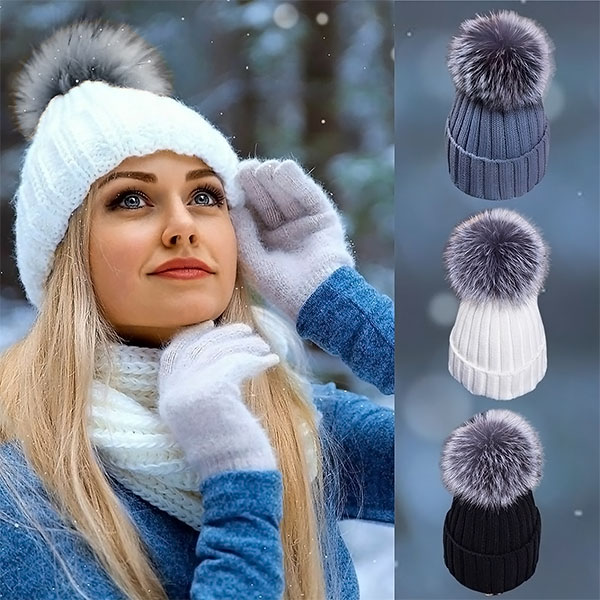 Cappello caldo in maglia con pom-pom | GLACIA